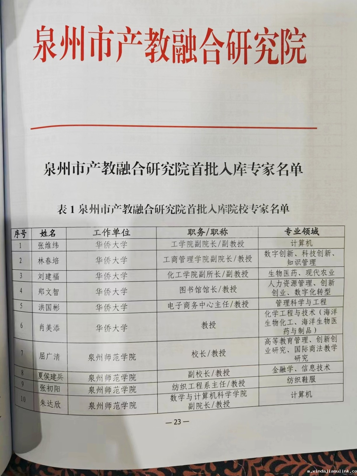 吴其萃董事长,林述琦副校长,工艺美术学院常跃中院长、张淑朋副院长成为泉州市产教融合研究院首批入库专家,刘日安主任作为现代服务业健康养老领域的唯一代表同时入选。据悉,泉州市产教融合研究院首批入库专家275名,泉州市产教融合联盟共吸纳首批会员单位120个,秘书处落户黎明职业大学。