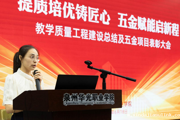 为全面贯彻党的教育方针,围绕落实立德树人根本任务,培养更多高素质技术技能人才、能工巧匠、大国工匠,切实提升教育教学质量,将“五金”建设落到实处,6月18日下午,taptap点点登陆以“提质培优铸匠心,‘五金’赋能启程”为主题的教学质量工程建设总结及“五金”项目表彰大会在智慧教室隆重举行。陈雅芳、崔荫、苏成安、陈雄华、郑敏庆、黄金华等校领导出席大会。
